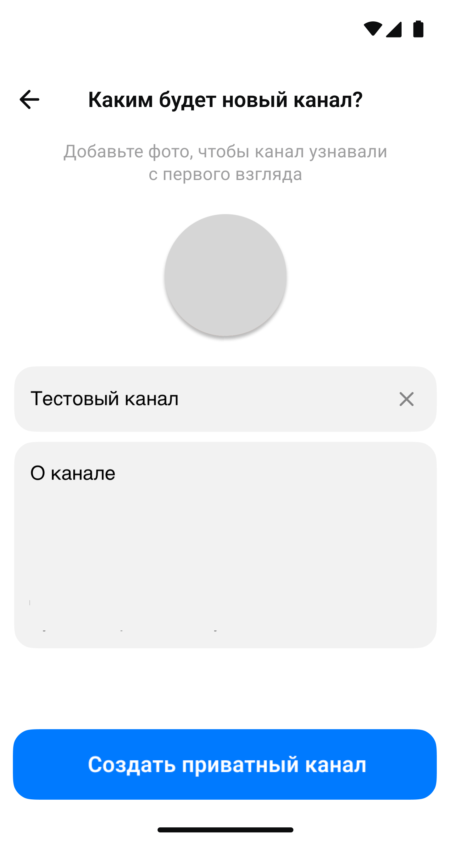 - Укажите название, добавьте описание и аватар, затем нажмите Создать приватный канал