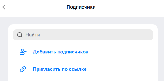 - Нажмите Добавить подписчиков, отметьте нужных пользователей из списка контактов и добавьте их в канал