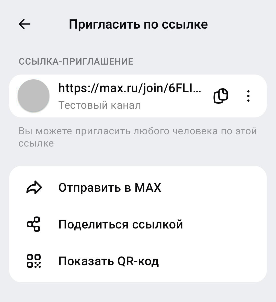 - Скопируйте ссылку, поделитесь ей или создайте QR-код на канал