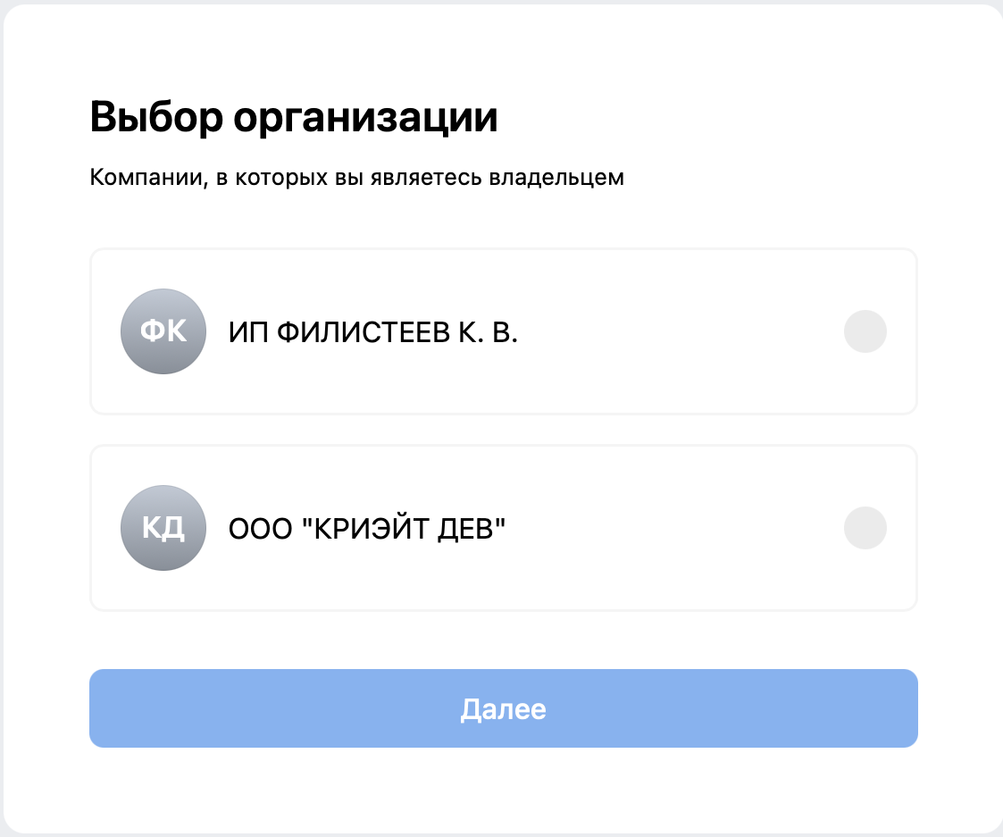 - Если к вашему аккаунту на Госуслугах привязано несколько организаций и при входе отображается окно выбора организации, вы выбираете нужную организацию, которую хотите верифицировать